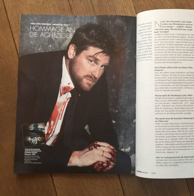 Danke an den Chefredakteur des hörBücher-Magazins Christian Bärmann für unser schönes Interview, bei dem wir viel über alte Hörspiel-Zeiten gesprochen haben. Und natürlich auch über die Achtziger und „Monster 1983“. Nachlesen könnt ihr es im aktuellen Literatur-Magazin „Bücher“, Ausgabe Dezember/Januar 2016. Das Magazin ist überall im Zeitschriften- und Buchhandel erhältlich. PS: Was mir natürlich besonders gut…