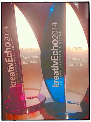 Wahnsinn! Ich habe gestern Abend 2x den „Bambi“ von Darmstadt verliehen bekommen – den KreativEcho 2014: 1. Platz für die kreativste Werbung „Print“ und 1. Platz für „Digital“. Ich freue mich extrem darüber, deshalb muss ich meine Freude mit euch teilen! So kann das Wochenende starten. An dieser Stelle danke ich auch der Jury und meinen…